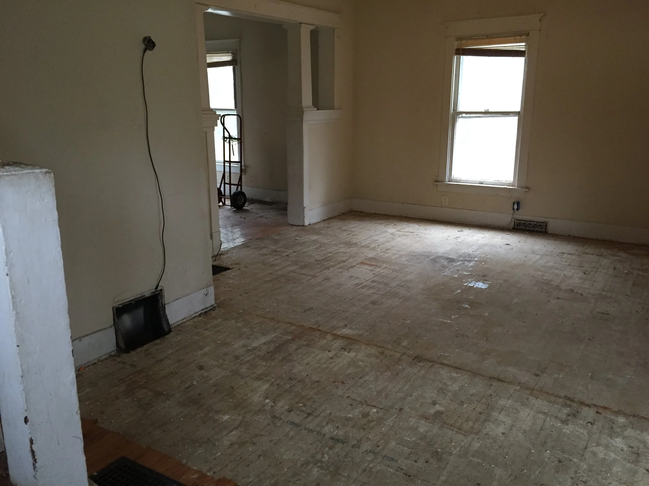 It was a 5 bedroom, 1.5 bath 1900 sqft 100 year old house. It had nice big bedrooms and a spacious living and dining room. It was close to the university and had plenty of off street parking. BUT it was absolutely disgusting, there were dead mouse carcasses and poop everywhere, the carpet looked like multiple people or animals had died there, and of coarse it smelled like money. (Which is to say that is smelled like pee, and poop, and death, but that scares most people away.)
